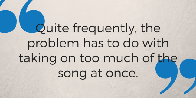 Sometimes my students seem a little shocked when their favorite song turns out to not be easy and intuitive to play with a few hours of work. Often, that’s just because what they are attempting is well beyond what they’re capable of at this stage of their progression on the instrument, but quite frequently the problem has more to do with the fact that they’re taking on too much of the song at once.